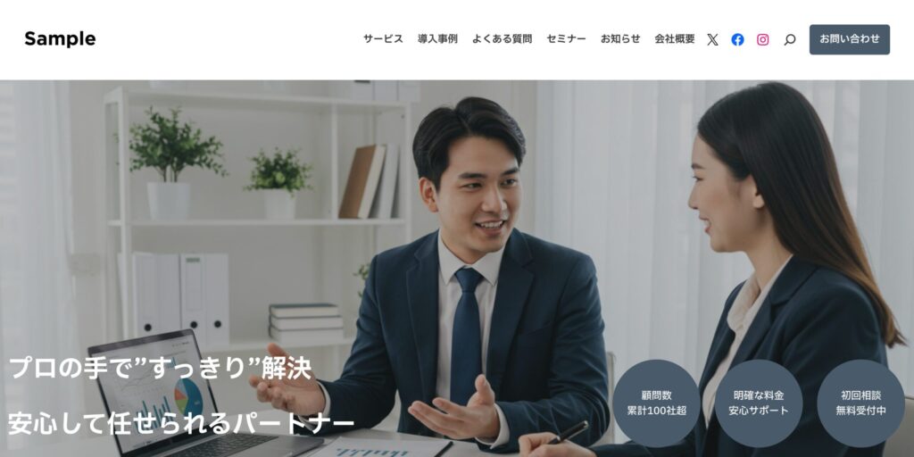 クリックするとサンプルサイトが開きます。