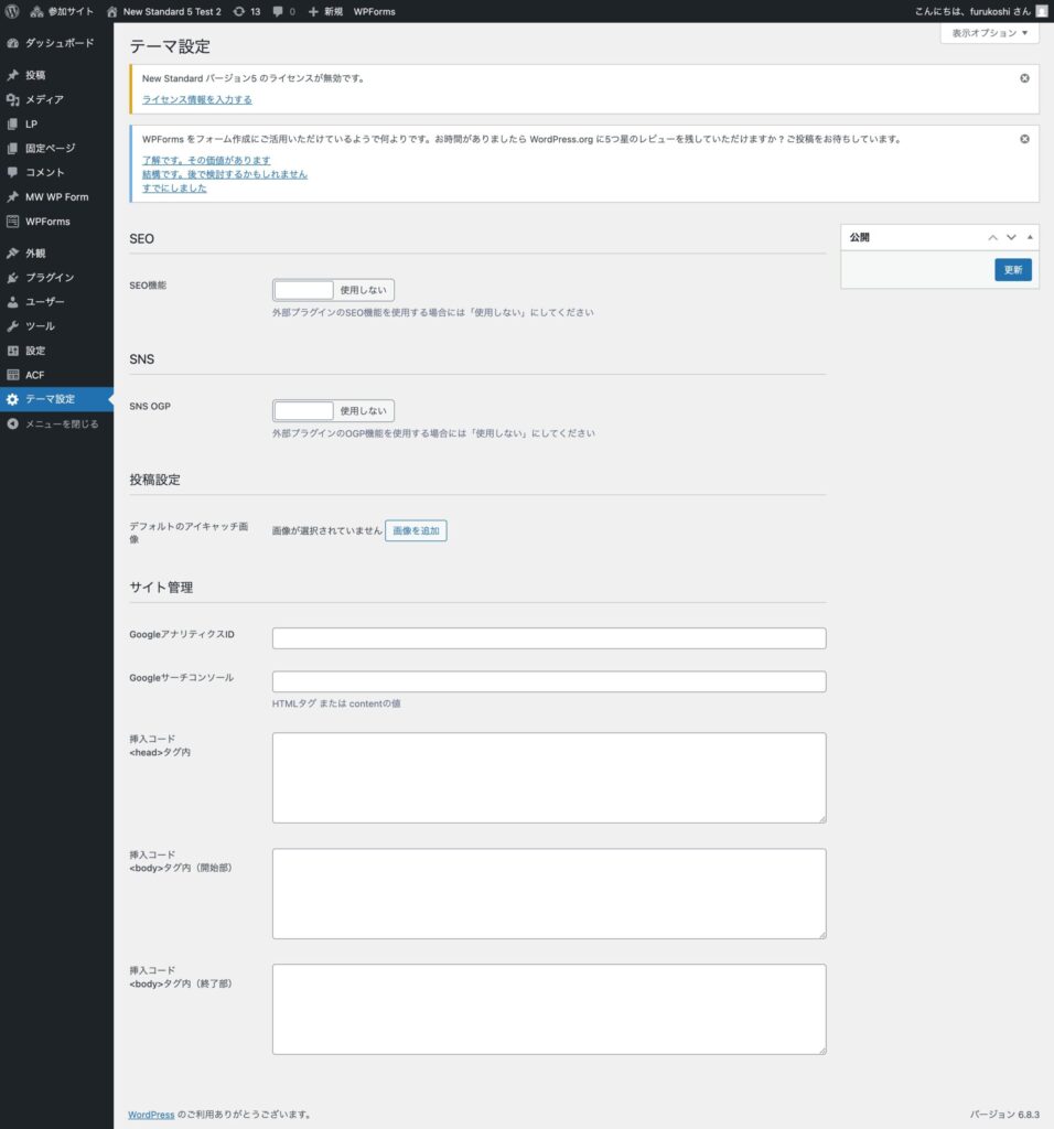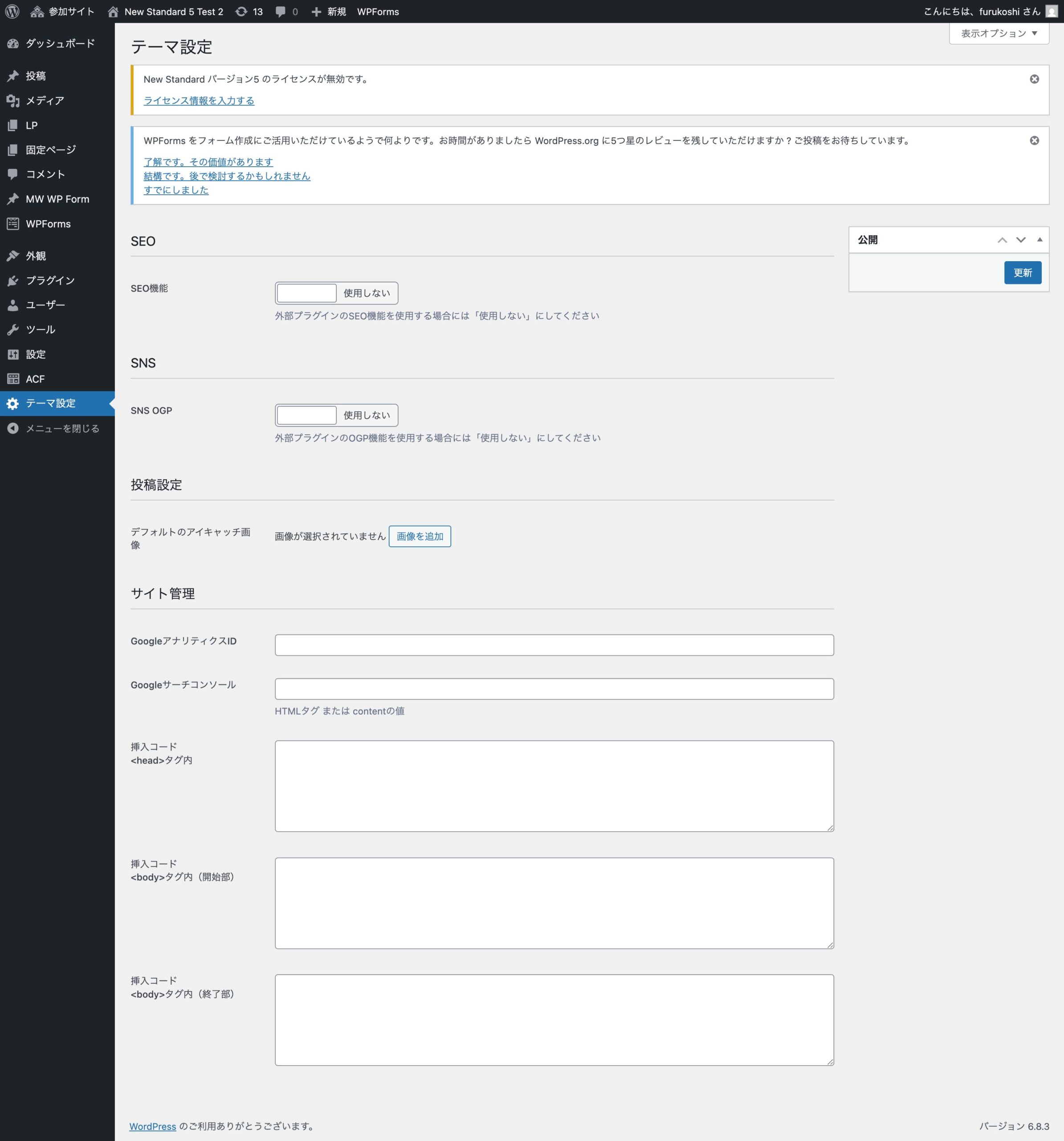 - GoogleアナリティクスID: アクセス解析を使う場合に設定(任意)